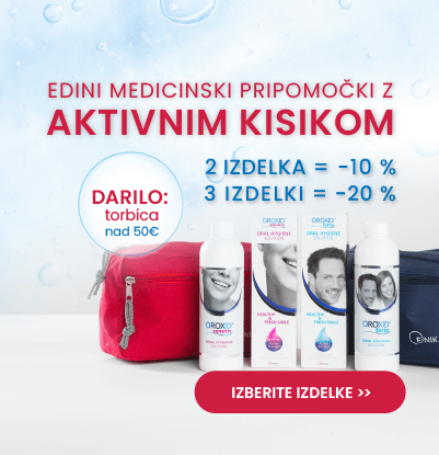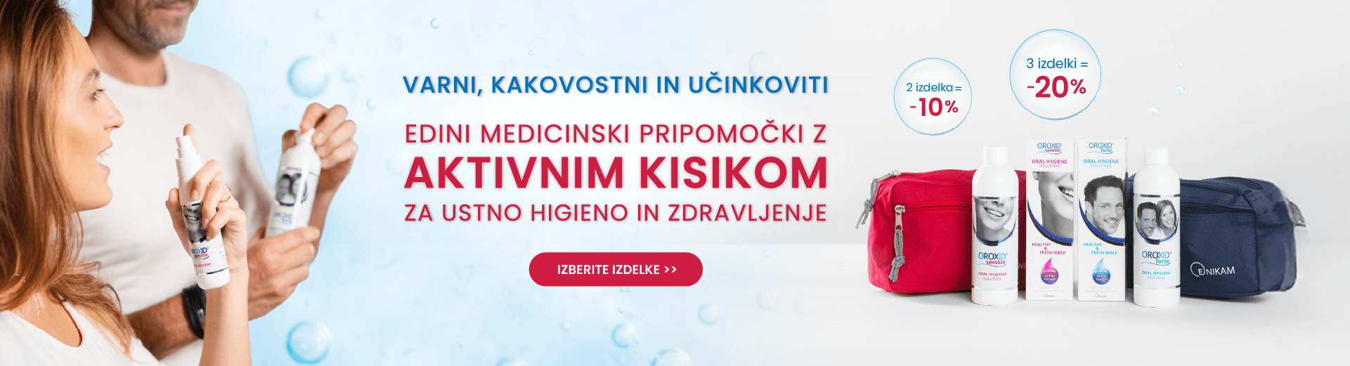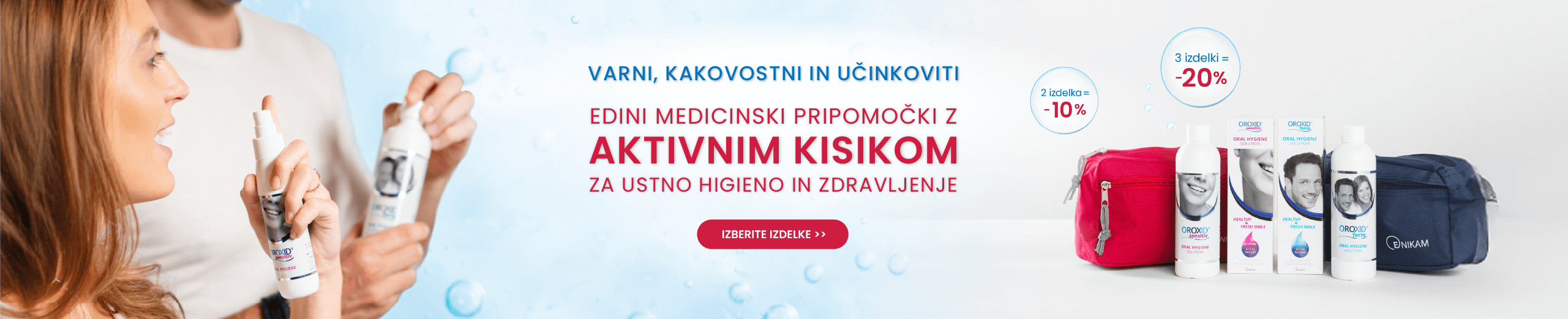 OROXID®  je linija 4 izdelkov, registriranih kot medicinski pripomočki za  vzdrževanje ustne higiene, zdravih dlesni in lajšanju bolezni obzobnih tkiv. Inovativna kombinacija aktivnega kisika in mešanice zelišč (ingver, ameriški slamnik in mirta) blagodejno vpliva na prizadeto ustno sluznico, pospešuje njeno obnovo, ciljano zavira razmnoževanje škodljivih mikroorganizmov ter zmanjša obseg vnetij in okužb v ustni votlini. Na voljo sta raztopina in pršilo v dveh jakostih: OROXID® forte za intenzivno ustno higieno in tretiranje težav ter OROXID® sensitiv za dnevno ustno higieno in občutljivejšo ustno sluznico. OROXID® je edina oralna raztopina/pršilo na osnovi aktivnega kisika, ki je v Evropi registrirana kot medicinski pripomoček za preprečevanje, zmanjševanje parodontalne bolezni ter zdravljenje vnetij v ustni votlini (vnetje, krvavenje dlesni, afte, zobne obloge, zadah…). Ena večjih prednosti izdelkov OROXID®  je, da ne vsebujejo alkohola in klorheksidina in so zato varni in primerni tudi za otroke.