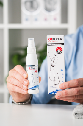 OXILVER® Nail solution v pršilu – je izdelek z aktivnim kisikom, namenjen oksigenaciji, hitrejši regeneraciji in negi nohtov in obnohtne kože. Deluje blago antiseptično in zavira rast mikrobov.